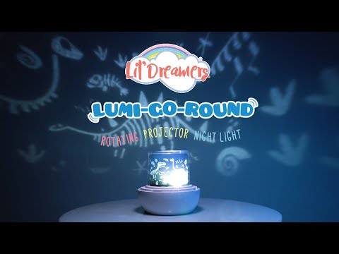 Glowing rotating projector night light with a unicorn theme that has three light settings, three light colours and three brightness modes.