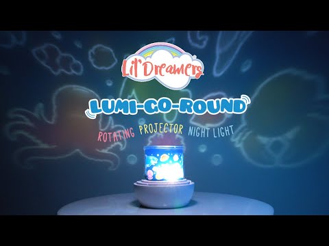 Glowing rotating projector night light with an ocean theme that has three light settings, three light colours and three brightness modes.
